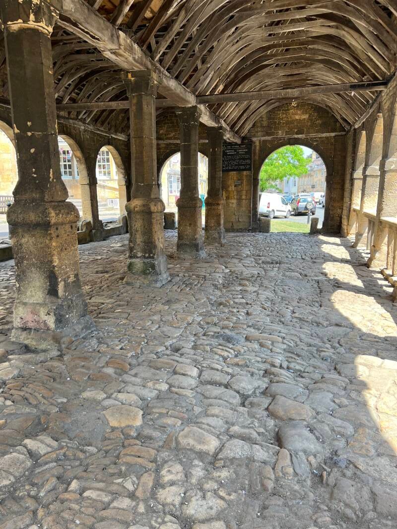 We continued from Broadway to Chipping Campden, a market town with the most beautiful High Street, lined with old buildings built from Cotswold Stone. The central point of High Street is the Market Hall, a shelter for merchants, constructed in the 1600s as an open produce market and still used today by local vendors. The Viscount of Campden, Sir Baptist Hicks, a successful silk merchant and politician, had the hall built as well as a row of Almshouses for needy pensioners, which also still serves its original purpose today. Sir Baptist Hicks was wealthy and generous and now lies entombed alongside his wife in St. James' Church.
