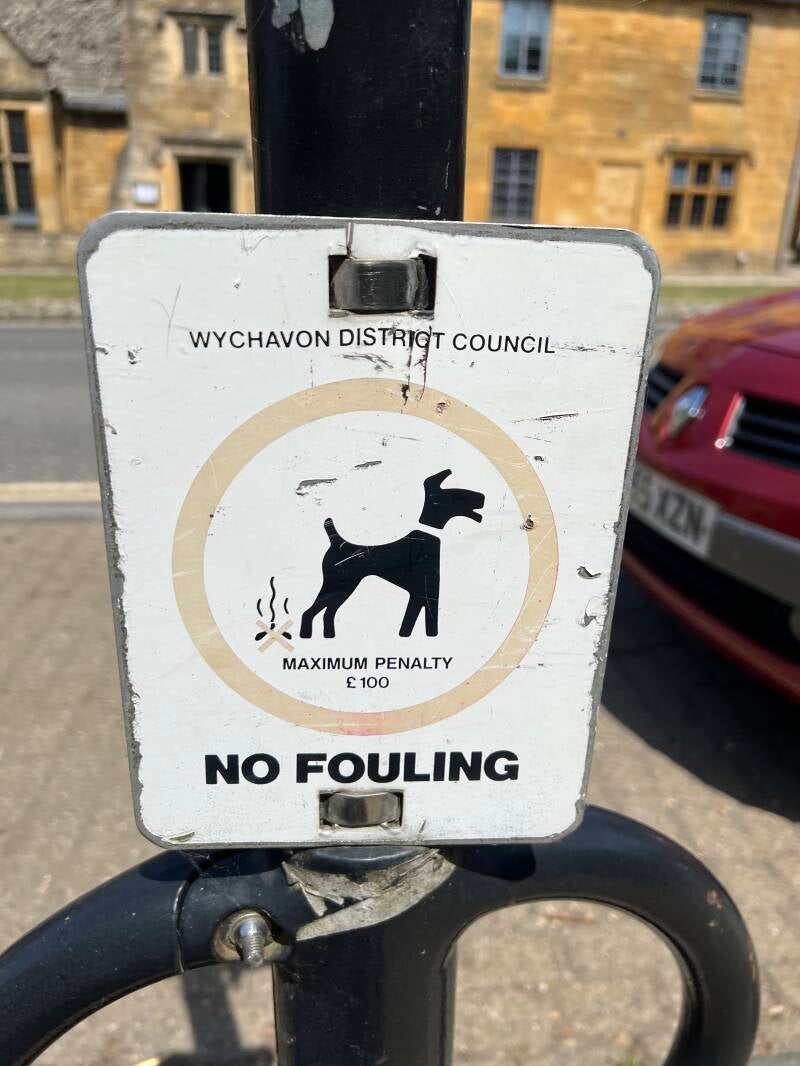 The village of Broadway is beautiful and busy, host to an arts festival currently going on. We took a scenic hike up to Broadway Tower along a public foot path through fields of sheep and sheep pies. The hills were alive! (I know--wrong country...) The Broadway Tower was built in the late 1700's as a "folly" for Lady Coventry and looks like the castle we all imagined in childhood--turrets, balconies, gargoyles. The streets of Broadway, like all the villages are charming. Here I also noted my first of a few reminders about walking dogs...