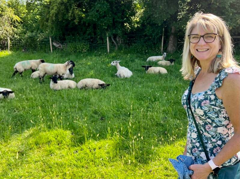 (Me trying to pet the sheep, obviously.)