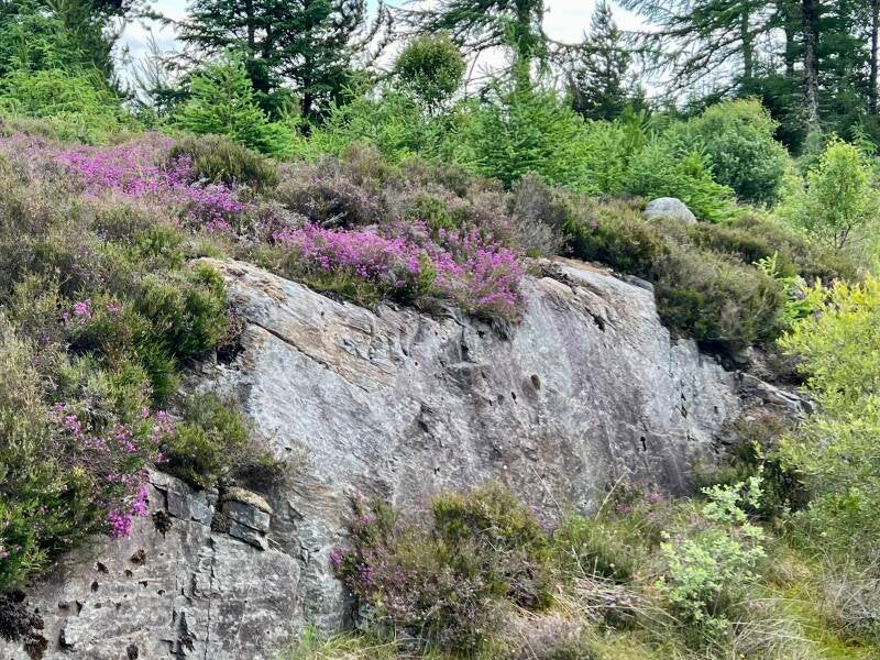 The trail had so much going on with heather, wildflowers, ferns, and trees, as we hiked up to a summit called Carn na Leitire.
