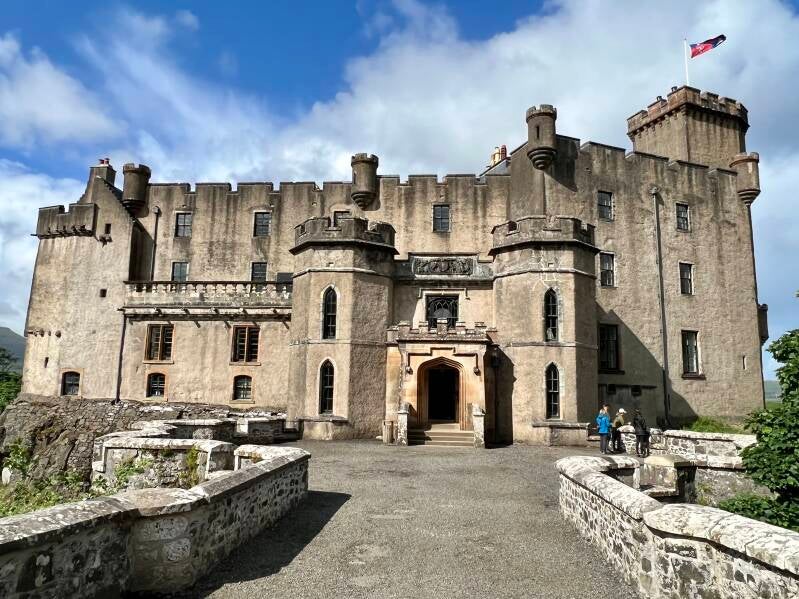 Okay, maybe one more castle. We visited the Dunvegan Castle, which is still used by the MacLeod clan chief and his family at holidays. The clan descends from Norse nobility and has inhabited Skye and surrounding islands since the 1200s. The setting of the castle is classic, with battlements on all sides and a long stone stairway leading down to the sea.