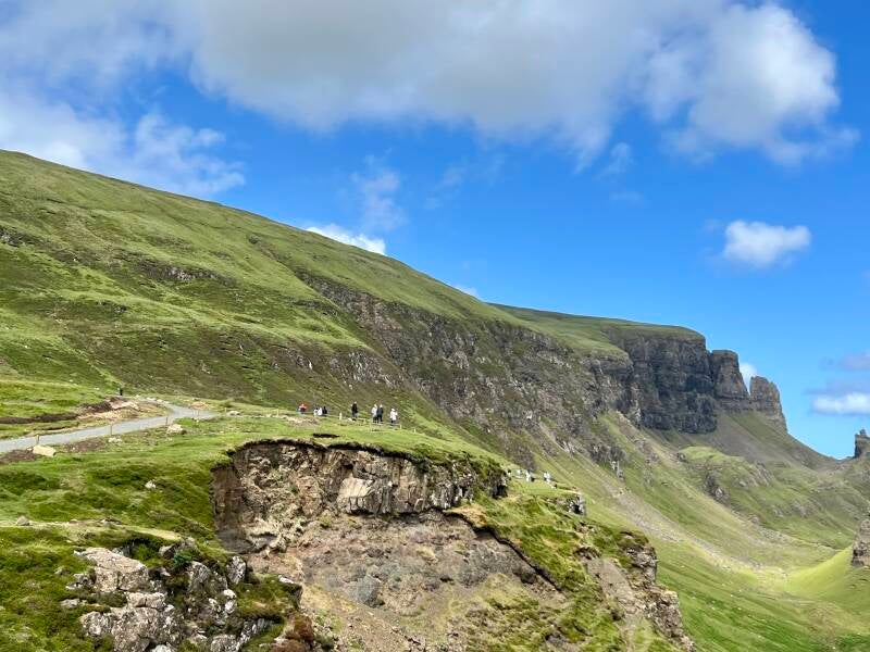 We braved the narrowest and windiest road yet to make our way to Quiraing, the northernmost point in the Trotternish Ridge, which was formed by a series of land slips and is still moving today. The views were crazy--and so was the wind!