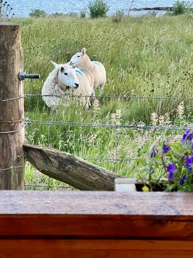 Good morning, sheep! I woke up and slipped out onto the porch with my coffee. The sun comes up at about 3:30 am, even earlier than me, so it was pretty light by time I got out to greet the sheep before our drive around the Isle of Skye.
