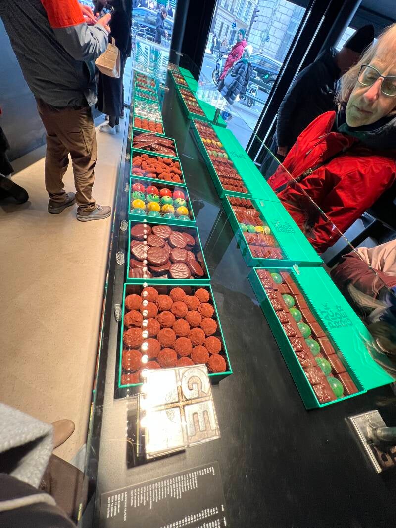 This market area had it all, and we visited the Fromager Laurent Dubois, the first of three Meilleur Ouvrier de France, which translates as the best workers in France or MOF. It is a honorable distinction among artisans and tradespeople, and they then become mentors with the responsibility to take apprentices and teach their skills. We also visited Chocolatier Patrick Roger where we sampled pralines and truffles and Patissier Arnaud Larher for an amazing macaron.