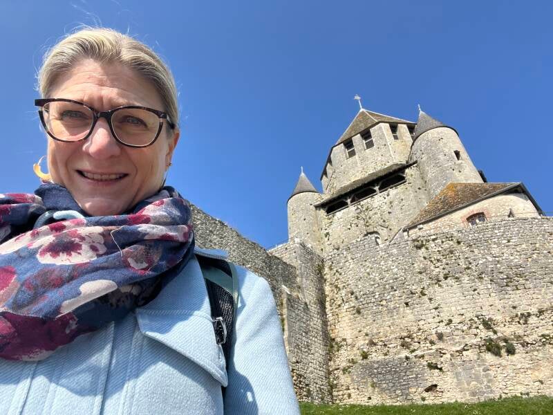 Remember what I said about that slow pace? Parisians we saw sipping coffee? Strolling the markets? Sitting in the cool sun reading? NOT SO on Monday morning! We set out of the city around 8:15 with about a million of our new friends. We managed to make it through a metro transfer and the transfer to the RER train line. The people movers and the brisk walking pace en masse are no joke. If we had tripped it would have been all over. Eyes forward and MOVE. Once into the train station, we grabbed a coffee and Steve paid one euro to use the restroom! We made it, and the P Ligne to Provins was practically empty, so I was able to catch up the blog while Steve watched the countryside.