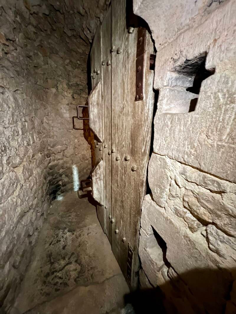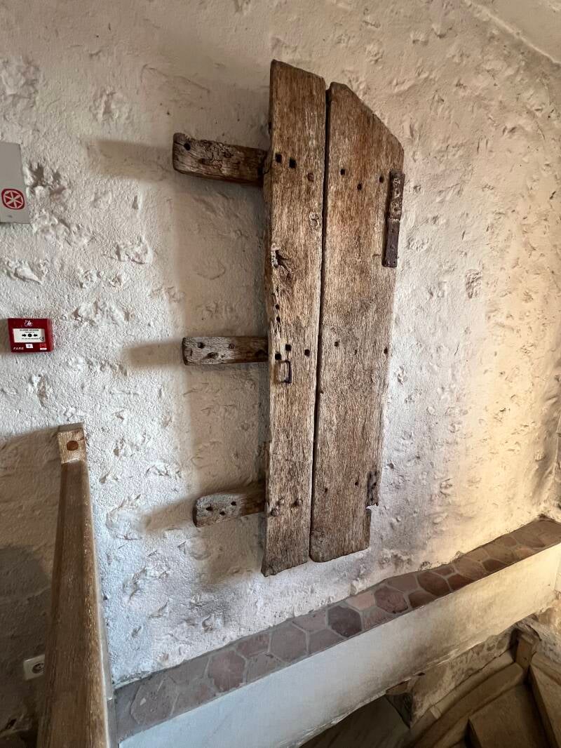 Tour Cesar or Caesar's Tower was constructed under Henry's reign and was the watchtower as well as a dungeon and prison. It is the only known octagonal tower built on a square base. The base provides for four turrets; the staircases are winding and narrow, going up in several places around the perimeter of the octagonal structure, with tiny chambers off each landing. Centrally located, with a view of the entry to the town, there is a "fancy" (by 12th century standards) Governor's Office, open and spacious with a fireplace. We squeezed (literally) up the staircases to the outdoor corridors for breathtaking views of the town and countryside. Today, and since the mid 1600s, the tower houses the church bells for the nearby Staint-Quiriace collegiate church, and I can attest to the fact they still ring as I was walking by at just the moment and felt the ringing down to my toes!