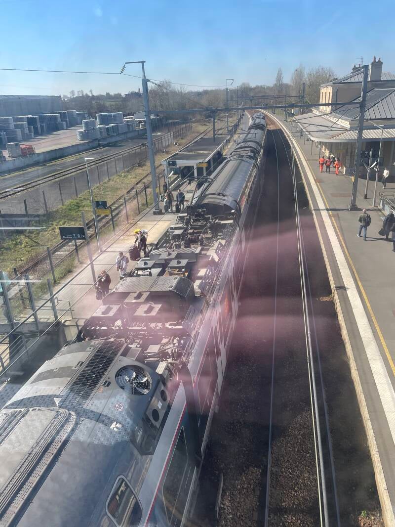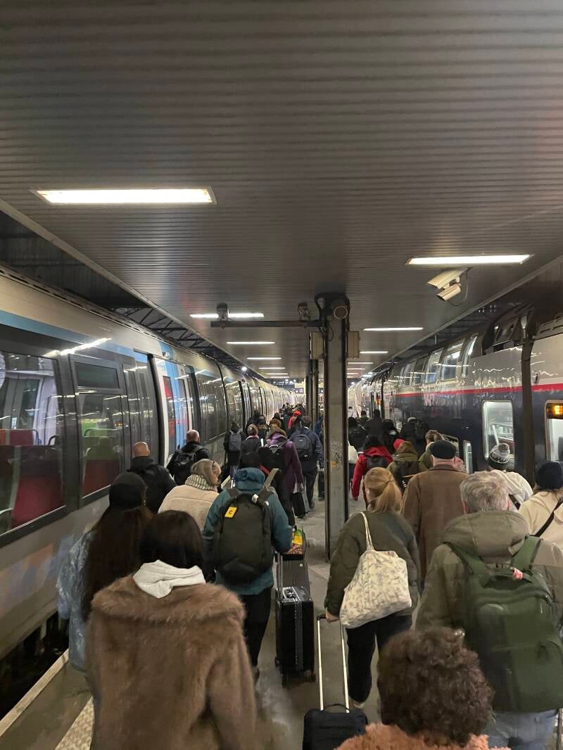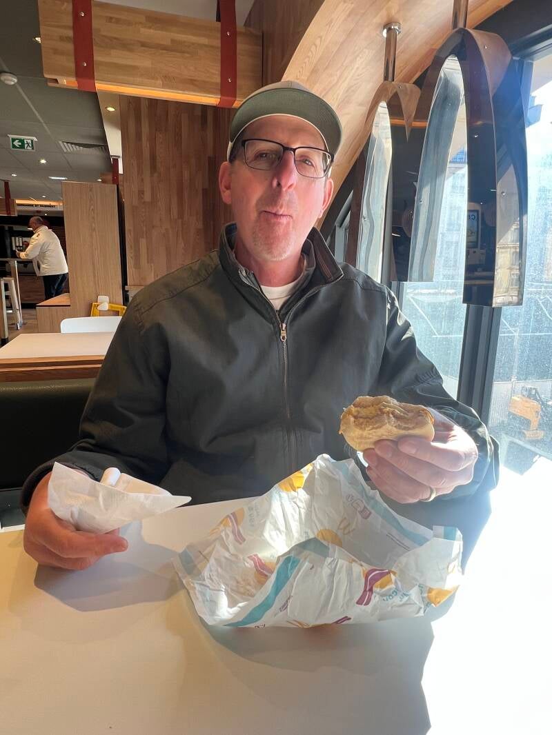 Knowing it would be a long day of train travel and tight timelines, we thought we'd start out with a full breakfast. Easier said than done... We popped into a cafe near the Metro station and tried to order a breakfast. The owner pointed to a different section and then to the larger section and said "À neuf heurs" which I understood to be until 9 o'clock... since it was 8:40, I was confused and tried to order again... I'm actually understanding much more than I thought I would, but it takes a while--à is at; jusqu'à is until... so after trying being redirected again, I got it... we thought we'd just have coffee and wait 20 minutes, but ordering coffee got us the traditional French breakfast of a coffee, juice, tartine (bread with jam), and croissant. Now I like my bread and carbs, but--seriously--protein is really underrated here! So after our breakfast of bread and pastry, we headed to the train via Metro. In typical Sparks planning we were way early, but there was a McDonald's where we ordered a good old Egg McMuffin for a bit of protein. All the way to Paris to eat at McDonald's! At least we knew what we were getting.