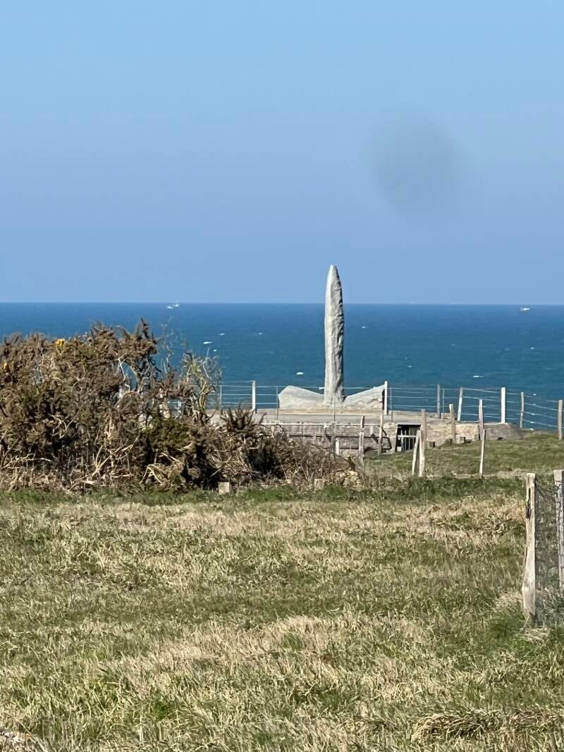 We started out at Pointe du Hoc, the highest point along the coast between Utah Beach and Omaha Beach, all occupied by German soldiers in WWII. Massive bomb craters and bunkers remain. This is the spot the 2nd Ranger Company scaled the 30-foot cliff in driving rain and wild waves, all while being shot at by German soldiers from above. They ultimately took control but at great loss of life here and at the beaches. Standing in the damaged bunker, looking out to sea at the rusted barbed wire cut by the American soldiers who successfully invaded was eerie.