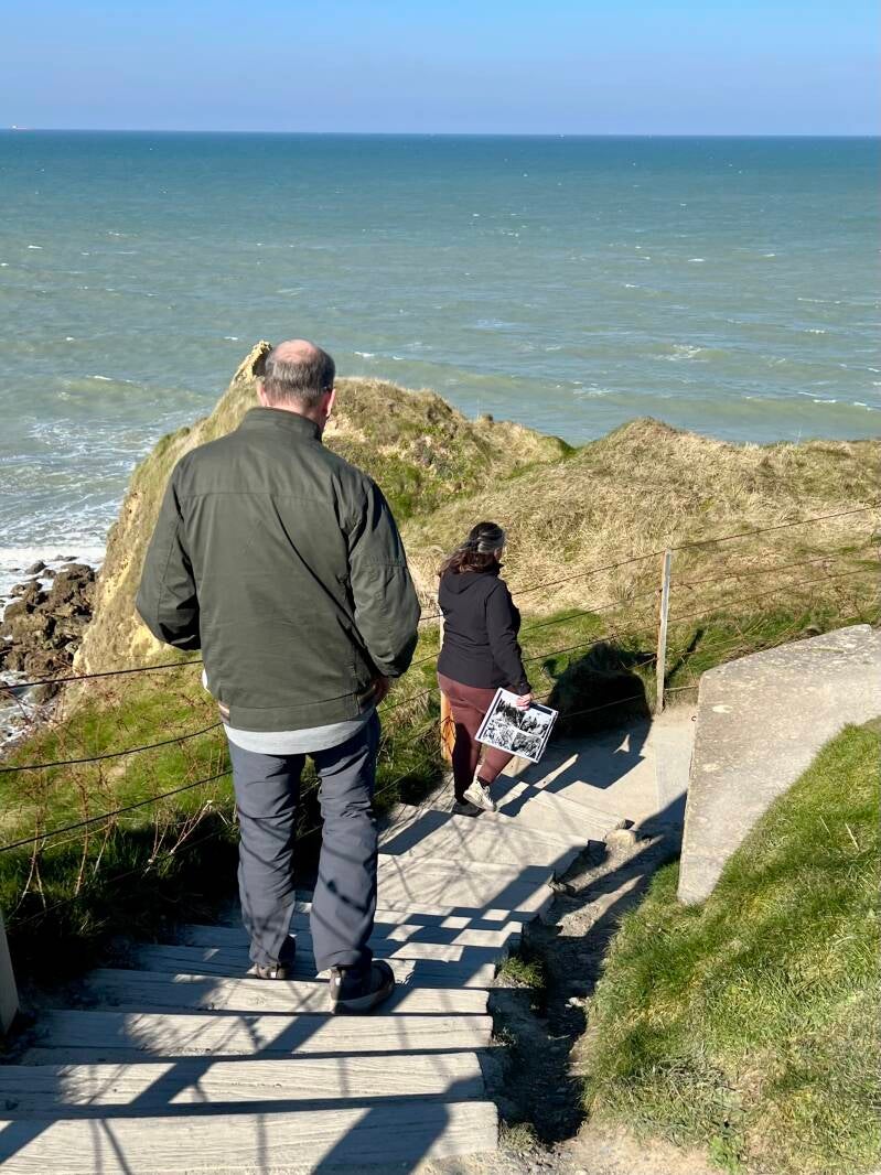 Unbelievably moving! We dug out our photos and we have some of the very same ones. We remember how moving it was to walk on the beach and try to imagine what it must have been like for the soldiers who landed there. Very moving, again.
