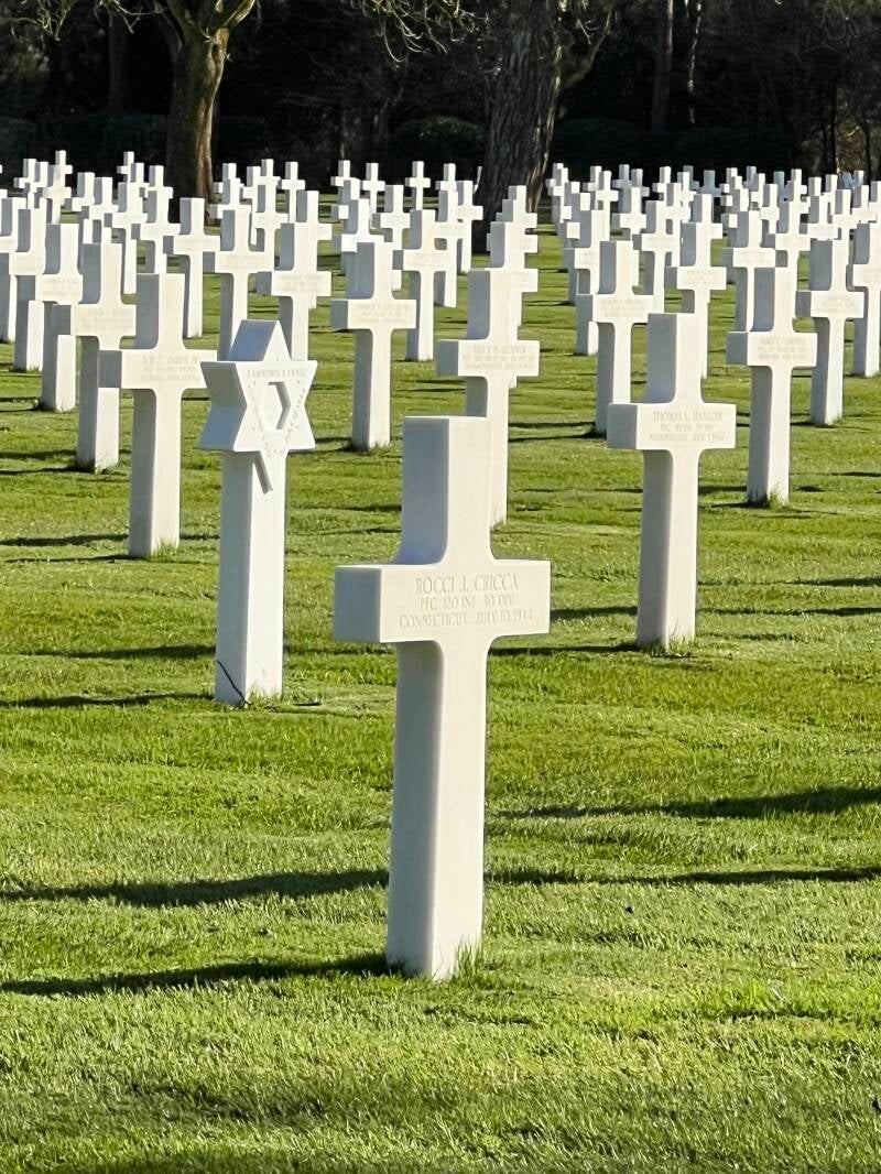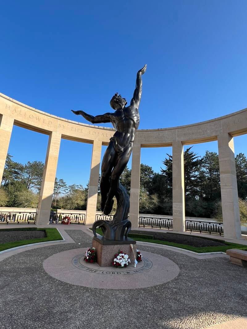 The graves are laid out on two sides, the majority lost at Omaha Beach overlooking the sea.