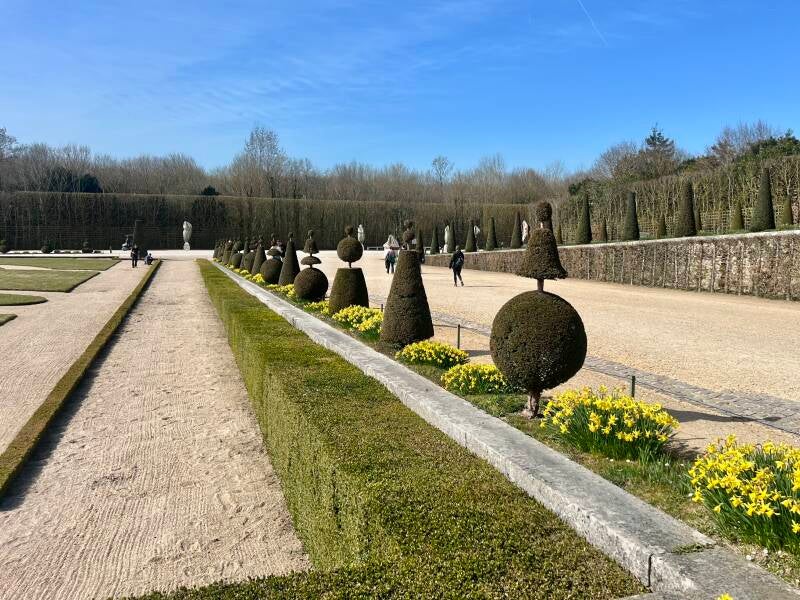 French gardens are symmetrical and neatly trimmed. Hats off to the guys trimming by hand.
