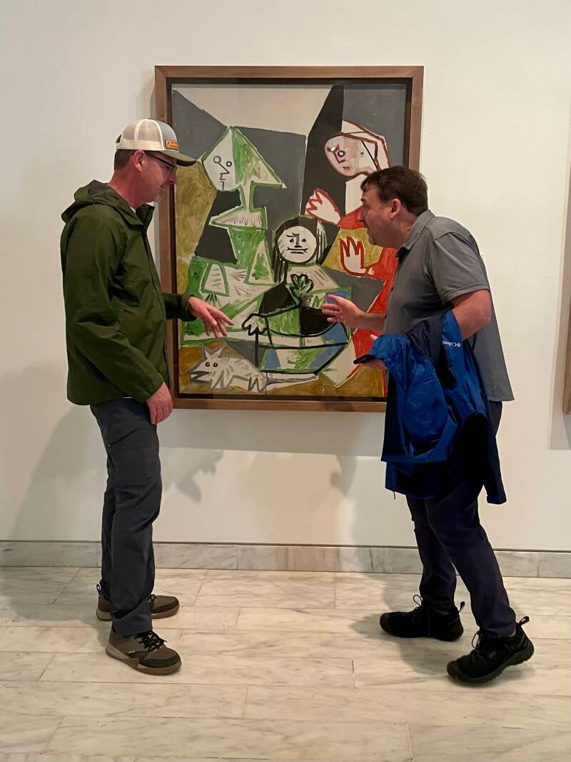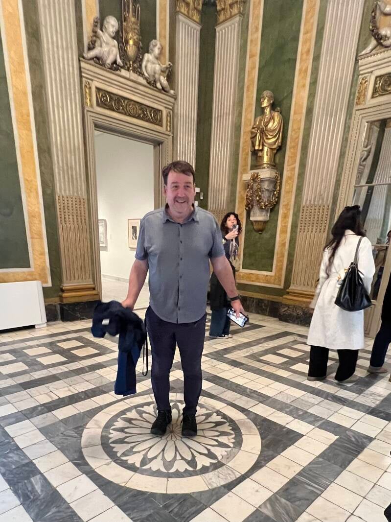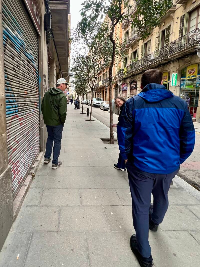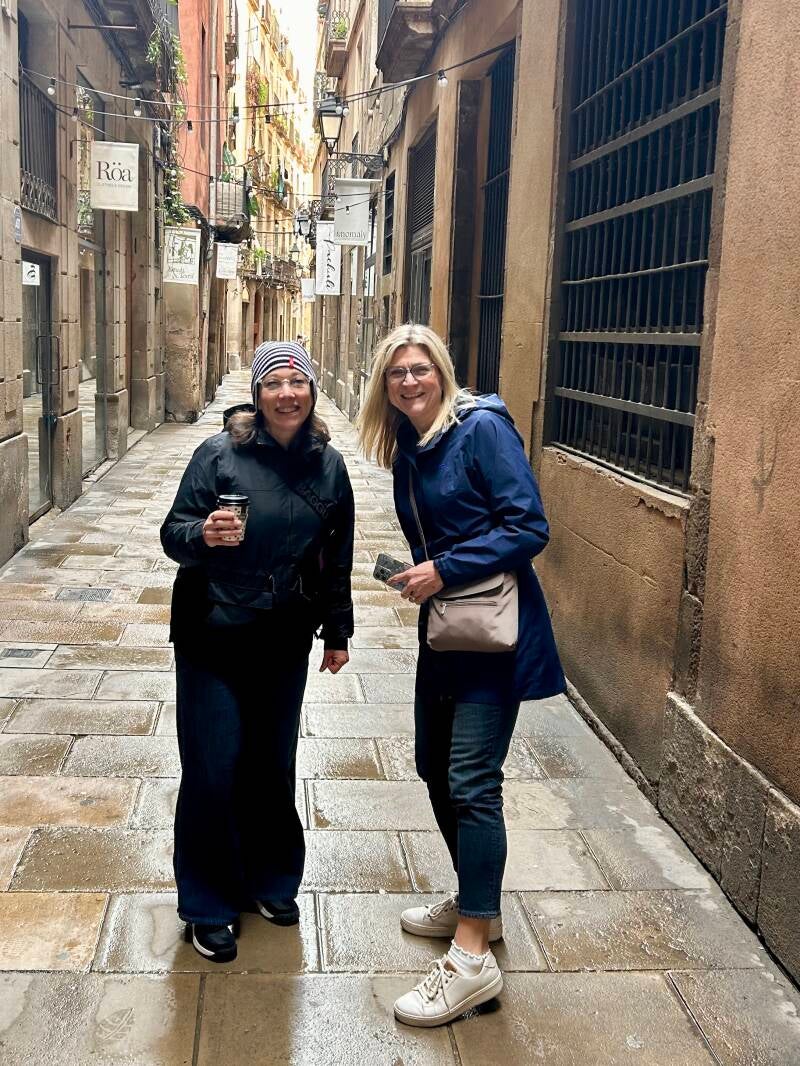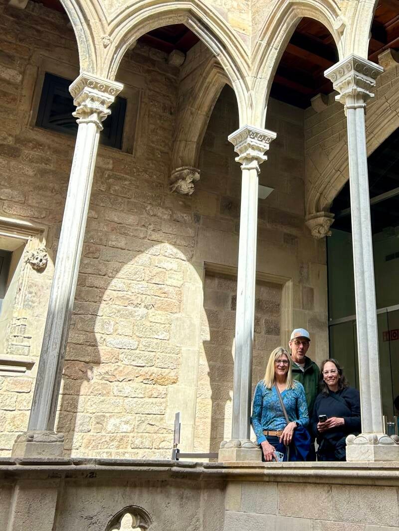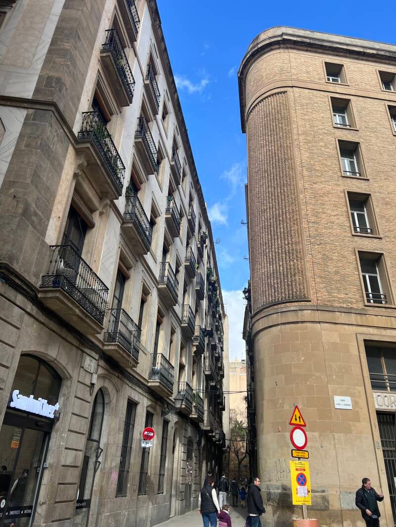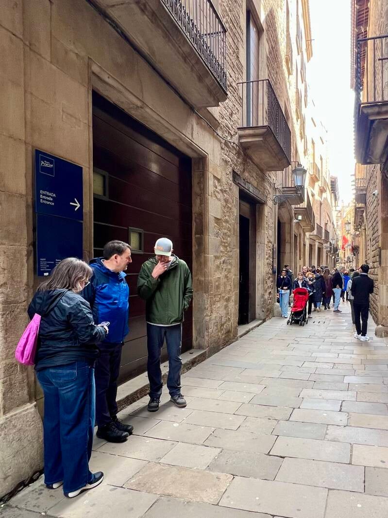We set out walking to the Picasso Museum, stopping to view the sights along the way. The skies were cloudy, but the temps were pleasant and it wasn't far to walk. Barcelona is under a lot of construction and many streets are torn up, so we had to step our way around. Traffic is crazy fast down narrow alleyways, keeping us on our toes.