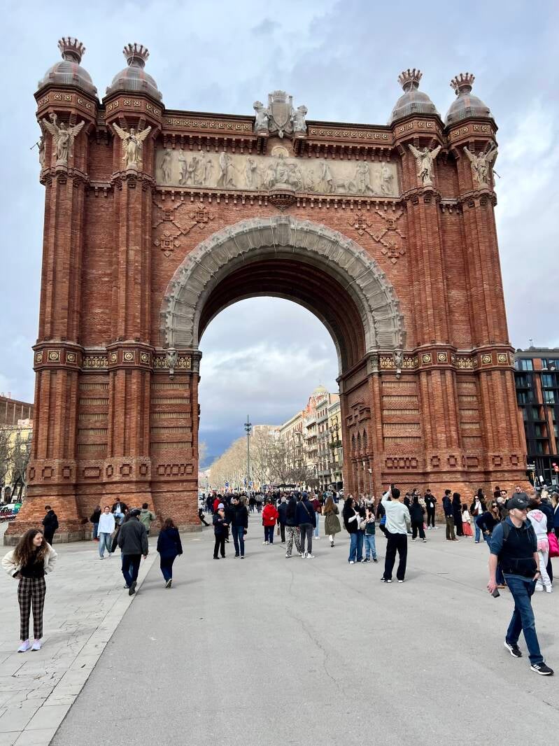We set off from the museum toward Güell Park, first in search of food. We wandered through Barcelona's Arc de Triomf. It was built in 1888 as the entry for the Barcelona World Fair. The site of the fair is now Cuitadella Park.
