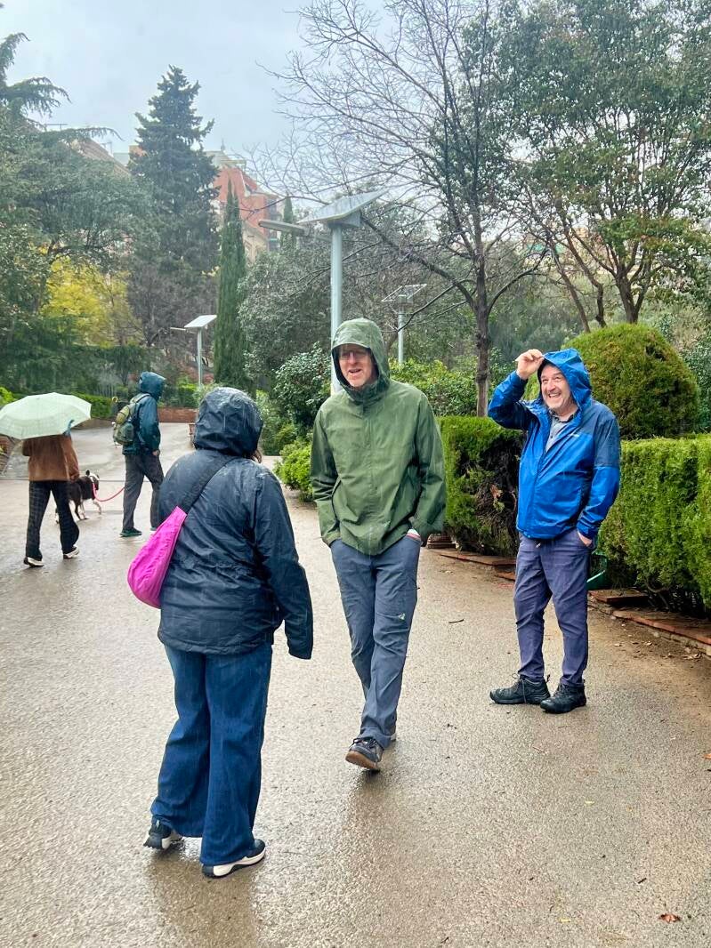 Several times Tony mentioned the skies were getting dark right about where we wanted to go, but we thought we might miss it. Tony suggested we hop on the bus if we wanted to make it to park. We stopped for empanadas and discussed bus options... we even tried to get the apps on our phones but it proved very difficult. As the first drops began to fall and claps of thunder joined in, we found a metro station and decided to get passes for the rest of the trip. With our translate apps in hand we tried to navigate the machine, and the lines backed up behind us.... after several tries, making the same mistake, we finally figured out to leave the card in the machine, right about the time a young man reached from behind us and pushed some buttons... "You know you can do this in English?" Presto! The prompts appeared in our native tongue! So glad we'll never see those people in line again as they were less amused than we were.